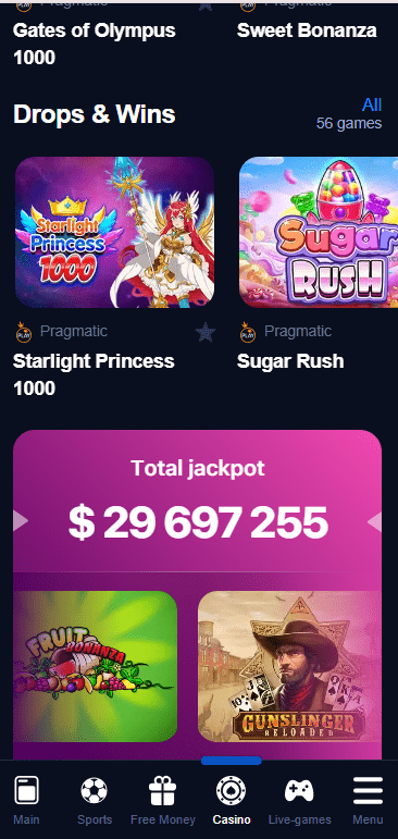 - Drops & Wins: Special promotional games featuring random prize drops and tournaments.