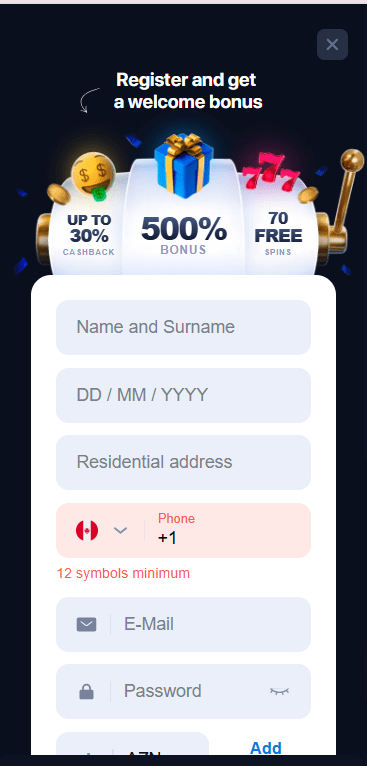 - Make a deposit — a bonus is automatically credited to your bonus account on your first four deposits: 200% of the first deposit, 150% of the second, 100% of the third, and 50% of the fourth. For example, if you deposit 260 CAD on your first deposit, you’ll receive 520 CAD in bonus funds, making your total balance 780 CAD.