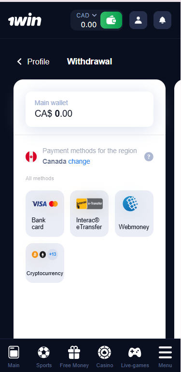 Once you have at least CA$25 in your account, you can proceed with a withdrawal on 1win. Here’s how the process works: