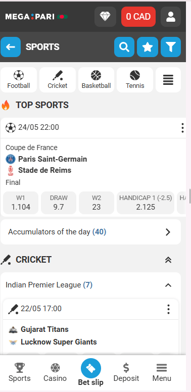 Megapari offers Canadian players a comprehensive and diverse sportsbook covering a wide range of sports and esports disciplines. Whether you’re a fan of major international tournaments or local leagues, Megapari provides extensive betting markets with competitive odds across more than 500 possible outcomes per event. The platform features live streaming available 24/7, ensuring you never miss key moments from your favorite competitions.