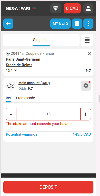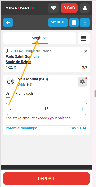 Canadian players can easily place bets on Megapari, whether before the event starts or live during the game. Here’s a simple guide to get started: