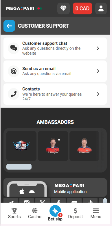 | Customer Support | Live chat, support@megapari.com, phone: +541151739333 / +541151739339 |