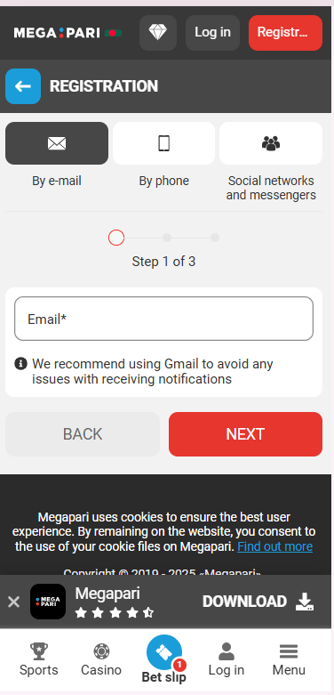 Canadian players can sign up at Megapari quickly and securely using one of three registration methods: phone number, email, or social media account. Each option is designed for convenience and takes just a few minutes to complete. If you prefer to use your phone number, this method allows for fast verification via SMS. To register this way: