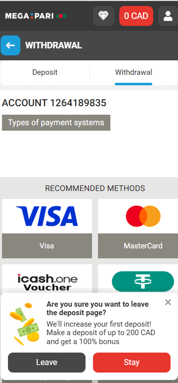 To withdraw your winnings from Megapari, simply choose one of the available withdrawal methods and follow the provided instructions. Keep in mind that withdrawals may require account verification and could be subject to certain payment method restrictions.